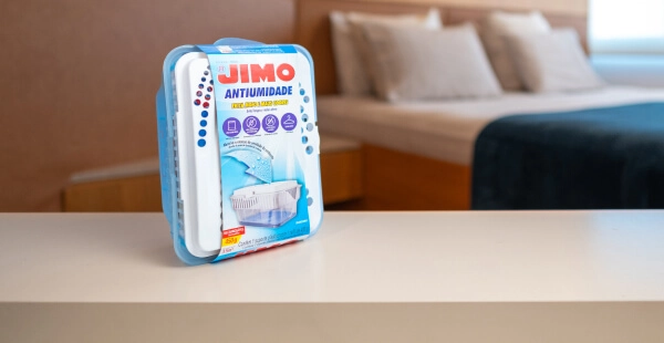 O JIMO Antiumidade, por exemplo, absorve o excesso de umidade até o percentual ideal (50-60%), prevenindo mofo, maus odores e corrosão.