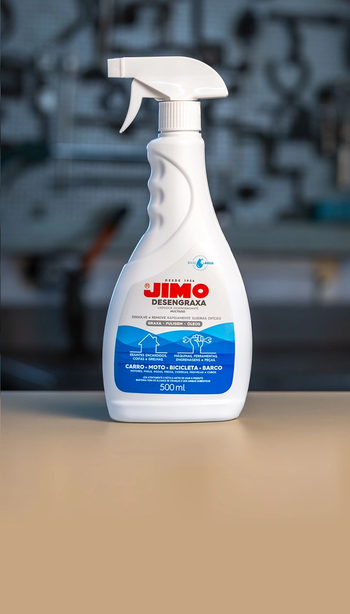 o JIMO Desengraxa foi desenvolvido para dissolver e remover rapidamente sujeiras pesadas como: graxa, óleo, gordura e fuligem. Contém agentes ativos que proporcionam uma limpeza profunda, penetrando em lugares de difícil acesso. Indicado para uso profissional ou doméstico.